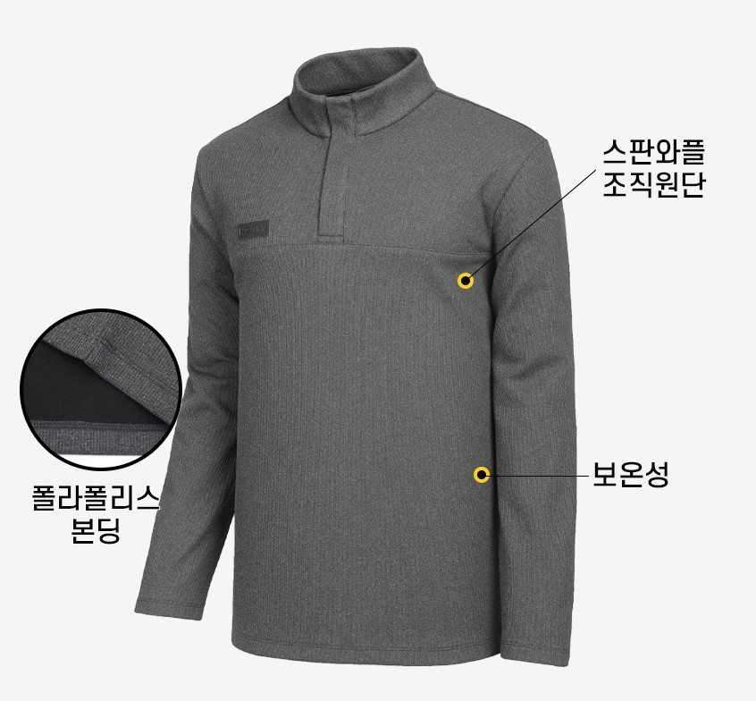 K2세이프티 기모작업복상의 중년남성 겨울등산복티셔츠 반집업 동계 방한 노가다 긴팔티 : 핫템